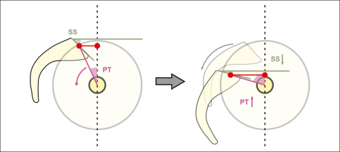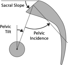 • Pelvic tilt (PT) - angle b/w vertical reference line (femoral head) & midpoint of sacral end plate